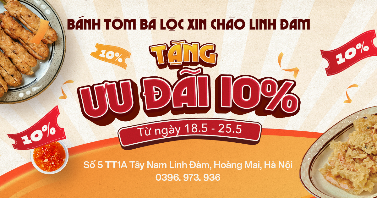 Xem thêmKHAI TRƯƠNG CƠ SỞ LINH ĐÀM – BÁNH TÔM BÀ LỘC TẶNG ƯU ĐÃI 10%